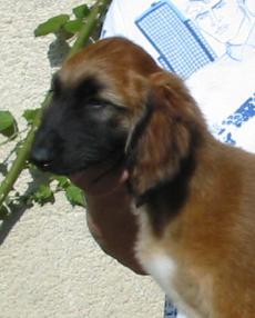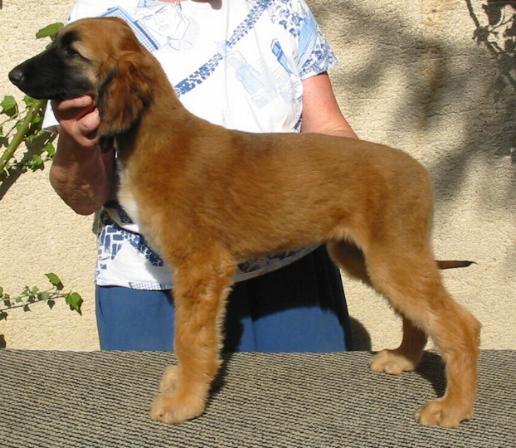 1/2 jährige goldfarbene Hündin mit schwarzer Maske, von hervorragender